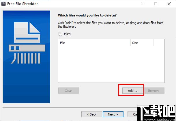 3、如图所示,按照提示点击ADD按钮打开文件管理器添加需要删除的文件。